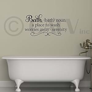 The verb form (for Americans) is to bathe. Bathroom Noun Sign A temporary sanctuary for overwhelmed parents seeking refuge from their offspring Available with a choice of stained frames. Vinyl wall decal: Bath: Noun; a place to wash worries away.